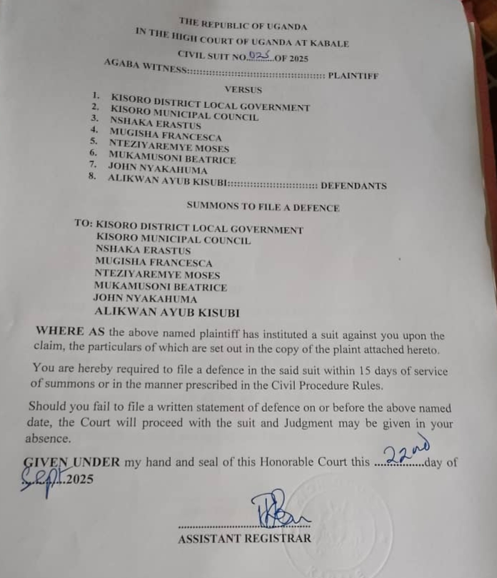 The Kisoro District Local Government and Kisoro Municipal Council, along with several officials, are facing a civil lawsuit filed in the High Court of Uganda at Kabale over alleged irregularities in the recruitment process for senior law enforcement positions.